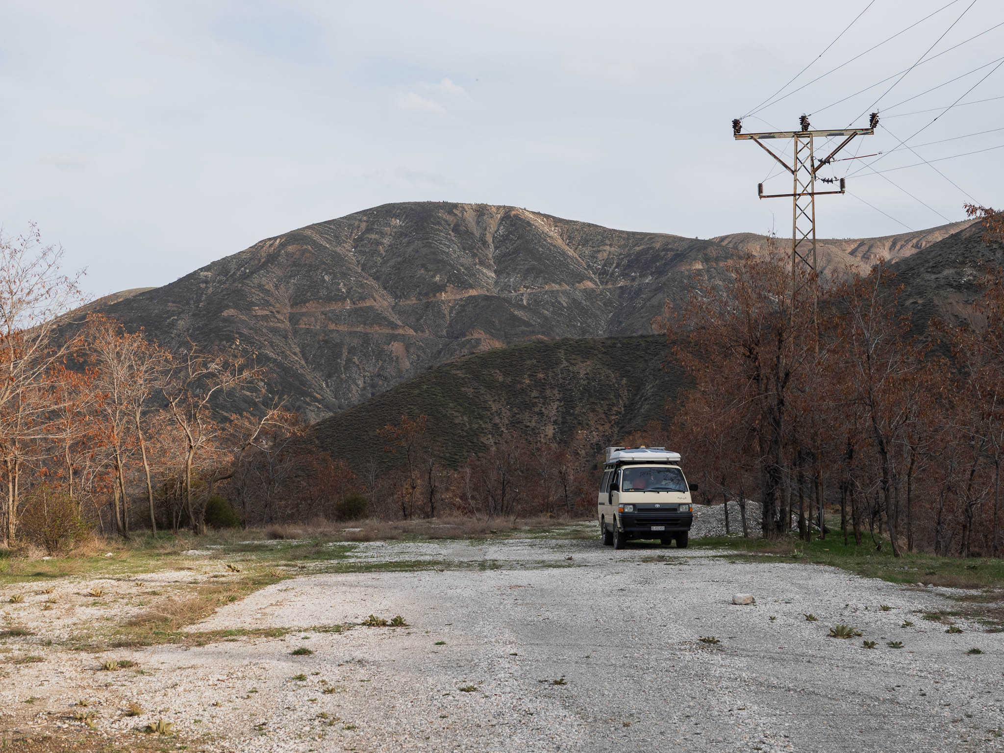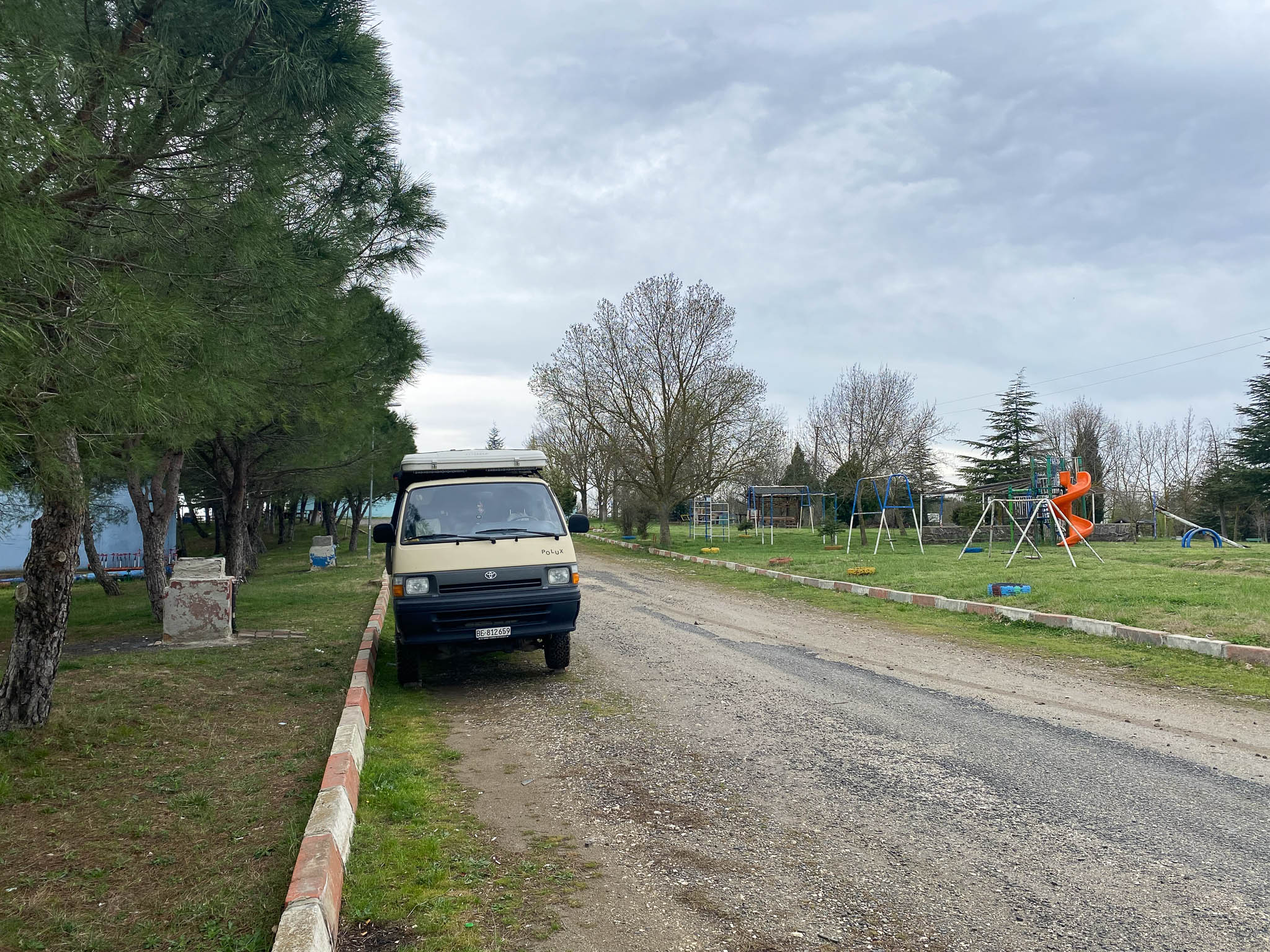 Une aire de camping est mise à disposition des voyageurs gratuitement avec électricité, eau, douches chaudes, WC, tables de pique-nique. Plusieurs conditions doivent être remplies pour pouvoir en profiter dont notamment une durée de 4 jours maximum, être marié et ne pas boire d’alcool dans la zone. On n’hésite pas longtemps… et on apprécie ce petit confort dans notre voyage.