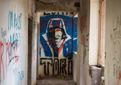 En cherchant une géocache, on découvre un ancien hôtel abandonné à Kukës. Malheureusement, il ne reste plus que la structure bétonnée, tout le reste a été pillé.